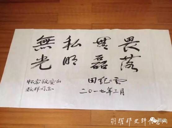 前几天,在胡家设在会计司胡同的灵堂的吊唁人群中,我看到了田纪云同志,后来,他发给了我去年发过的他的一篇采访记录,是怀念耀邦的。昨天早晨,田老又给我发来一张他写的大字,也是悼念耀邦的,“无私无畏,光明磊落”,促使我要重发这篇旧文,以示对耀邦夫妇的景仰,两位真正的共产党人,他们是我永远的楷模。