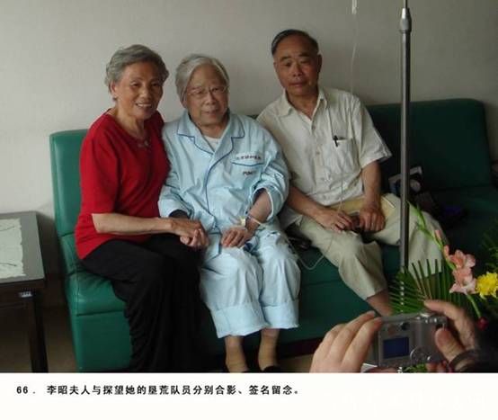 一晃而过五年了。我们想念着已迈入耄耋的李妈妈,并得知身体有点病住在医院。我们-直不忘李昭妈妈挚爱:“你们下次有机会来北京我们,再会会面”。2007年夏天,我们特意安排了去北戴河旅游计划,顺以再次拜望李昭妈妈。可是老人住在著名的协和医院,她又是一位享有特别护理的高级干部,按常理不经过有关方面批准,是不能进院看望的。这次,又是在高勇同志鼎力的帮助下,特别得到李昭夫人的挚意,才取得医院方面特别许可,并且为此安排了一间宽敞客厅。6月6日上午,高勇同志带领我们一行十人,前往协和医院,同行的还有胡耀邦史料信息网站的同志与团中央档案馆叶学丽同志等十多人,这是一次难忘的破例接见,那天她是挂着吊针,早已在会客厅等候,令人十分感动,当她见到我们时,却变得精神矍铄,不仅亲切与我们交谈,还给各人签名,与大家合影留念。在医务人员允许的时间里,我们如愿以偿会见了李昭妈妈,大家同声祝愿老人家早日恢复健康!道别时,她还交代叶学丽副馆长要好好款待垦荒队员。
