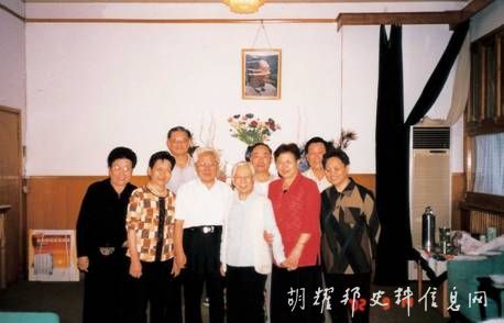 德平同志因正在忙于告别仪式事宜无法脫身,他从盛平同志那里得知我千里迢迢来到,特地托咐夫人王豫颖来表示谢意,并一起合影。接着,盛平同志将装有二张讣告的白信封递给了我,务使我与女儿17日上午如愿进入八宝山殡仪馆大礼堂,向李昭奶奶遗体告别。十一时许,女儿拉着我恋恋不舍地步离久仰的会计司25号……回首翘望,深深感受到这是京城不平凡的一家人。待人接物,母教孝行,使我读懂了"母親像本家书"的涵义。