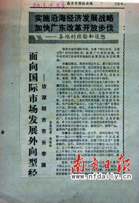 李通波当年在《南方日报》上刊发的稿件。(翻拍)