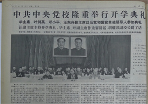 胡耀邦于1977年3月到中央党校任职,经过半年努力紧张的工作,于9月26日复校开学。因为临近国庆,中央领导人太忙,决定在国庆后举行开学典礼。