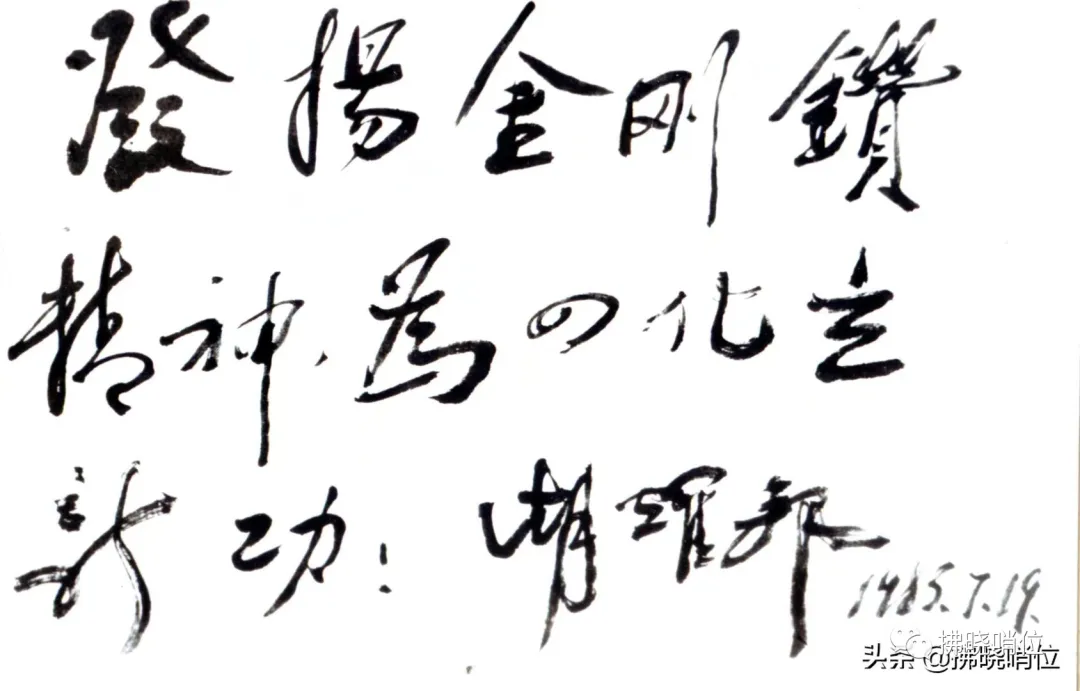 但是,胡总书记的题词却写的是“金刚钻”。大家都以为总书记搞错了,把字写别了。怎么办?在场的领导没有一个敢吭声。等胡总书记走了以后,翻开字典一查对才知道,不是胡总书记搞错了,把字写别了,而是几十年前,我们的前辈搞错了,把字写别了。这个时候,虽然团里的旗子上的别字,没有办法换掉,也不能换掉,但是,从此以后,大家在书写金刚钻时,都开始写金刚钻。