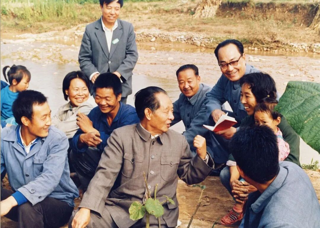 1985年9月,胡耀邦在甘肃陇南地区和农民亲切交谈