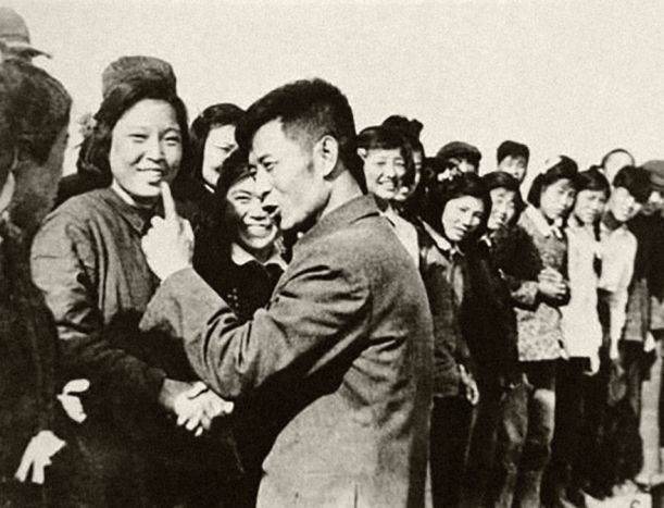 胡耀邦在黑龙江省萝北青年垦荒区看望垦荒队员