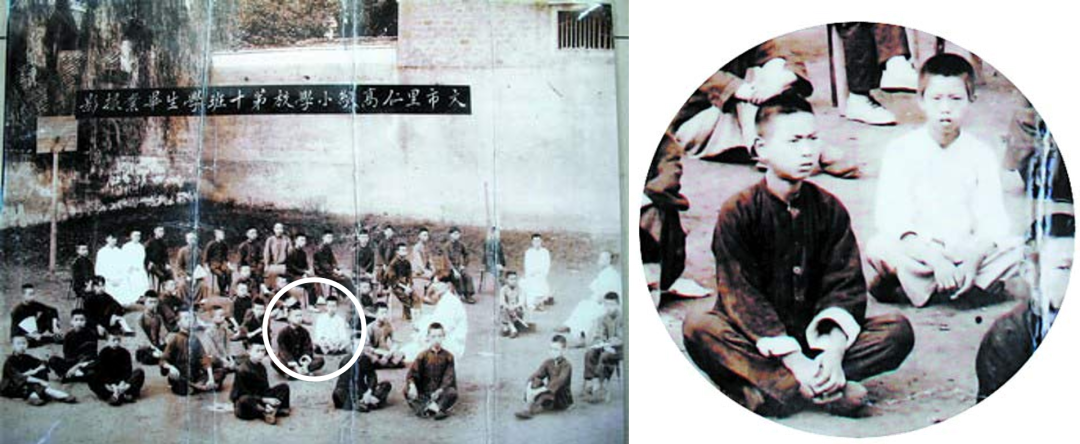 文市里仁高级小学校第十班学生毕业摄影右图为杨勇(左)与胡耀邦(右)
