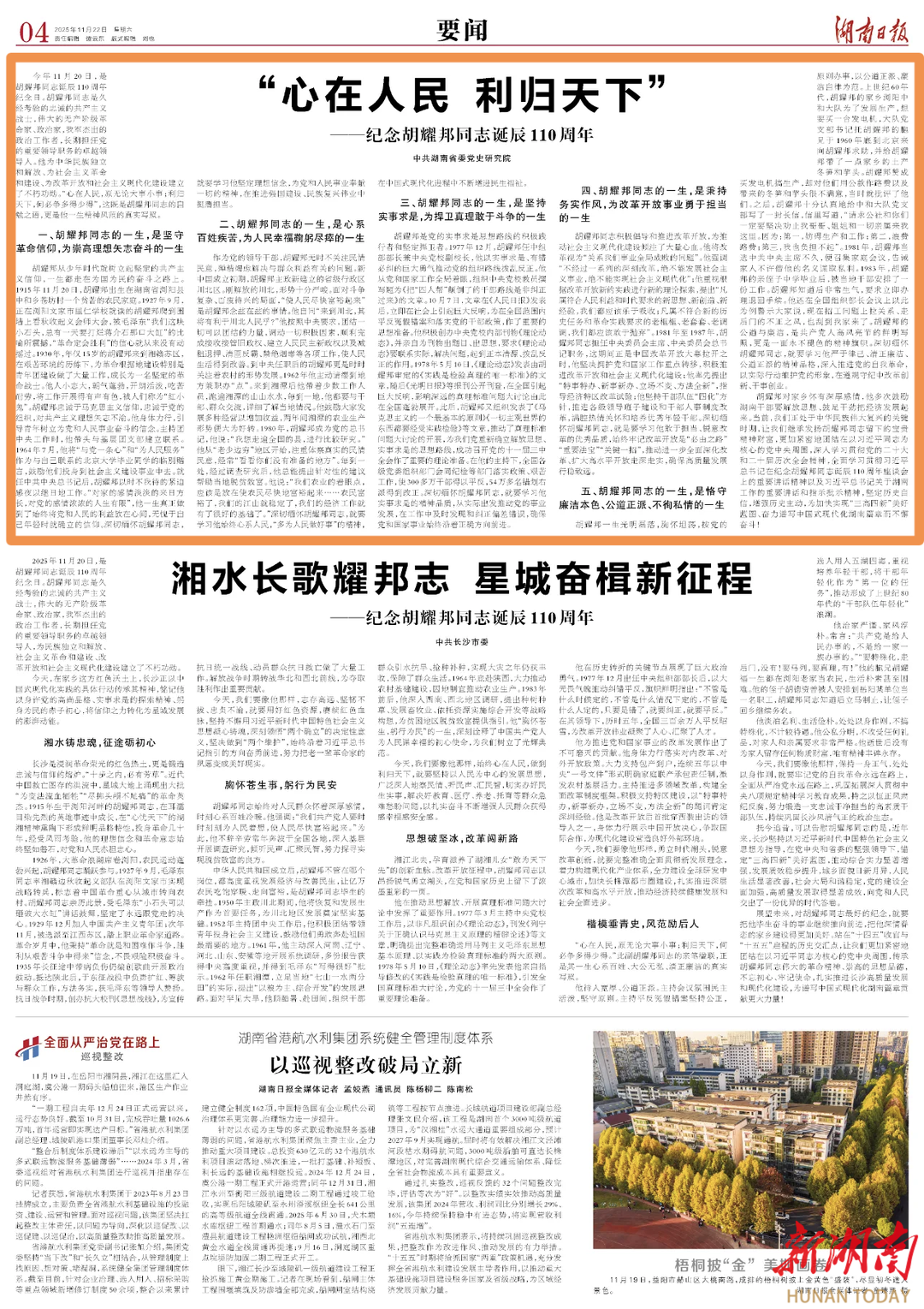 湖南党史研究院:“心在人民 利归天下”——纪念胡耀邦同志诞辰110周年