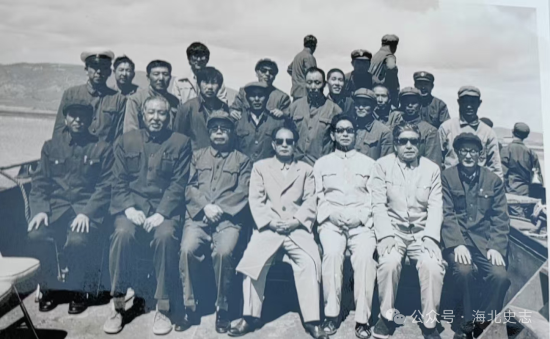 1983年7月24日下午,胡耀邦同志一行横渡青海湖时与工作人员合影留念。