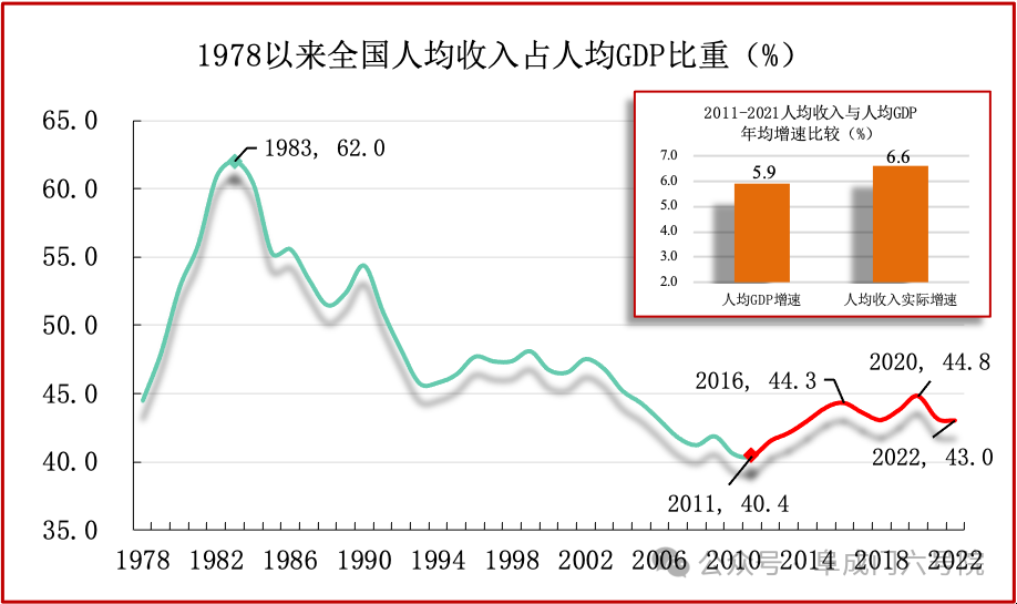 (居民收入占GDP的比重大概在80年代中期达到顶峰,此后逐渐下降)