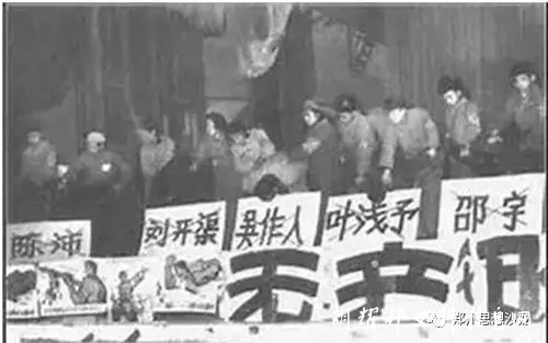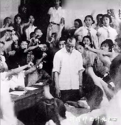 1966年6月,清华附中学生批斗副教导主任冯玉中。部分同学还戴着红领巾