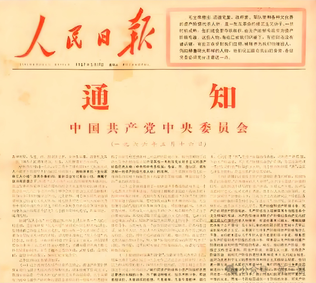 “五一六通知”是正式发起文化大革命的冲锋号。这个文件的形成,正是说明党内高层矛盾发展到了无法调和、无法掩饰的地步,只能大规模地公开爆发。如果一定要说文化大革命是从哪天开始,就应该是从5月16日开始的。