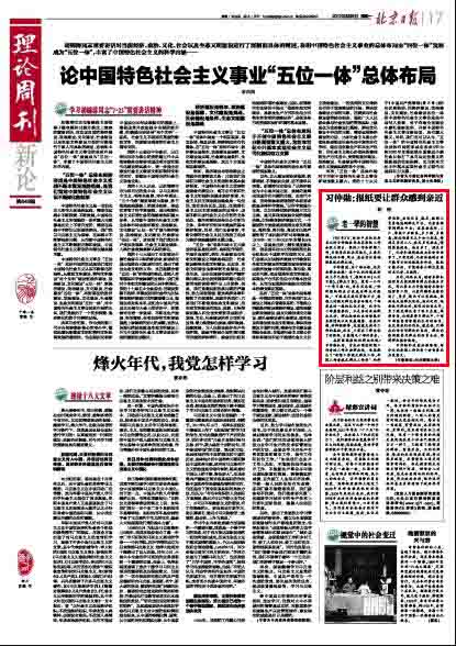 习仲勋说:为干部办报,还是为群众办报?这个认识问题在理论上早已解决了。报纸名曰《人民日报》、《群众日报》,没有一个叫“干部日报”的。乔木同志说:“任何报纸都应力求成为群众的报纸。”可现实是我们贯彻不力,思想上对满足群众要求与满足干部要求的一致性认识不清,而今天干部最需要的,正是当时当地群众生活、群众运动的生动形象和真实情况以及发展趋势、存在问题、新鲜经验等,这些就是指导工作的基础。而且,只有办了群众化了的报纸,才能满足干部的要求。