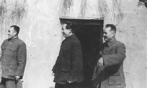 1945年,毛泽东(中)与朱德(左)、叶剑英(右)在延安