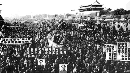 1976年10月,参加庆祝粉碎“四人帮”集会的群众