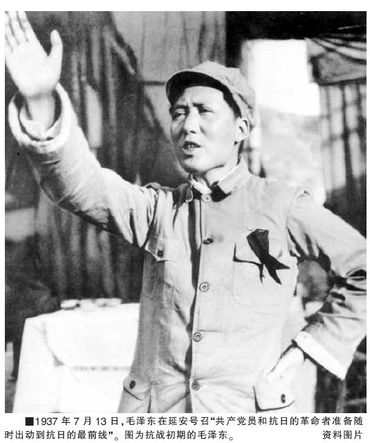 九一八事变后,中共中央和中华苏维埃共和国临时中央政府多次发表宣言,强调只有苏维埃政府才能领导全国民族革命战争,只有工农红军才是实行民族革命战争的民众武装。对中国共产党领导下的苏维埃政府、工农红军的肯定,既表达了中国共产党的抗战担当,也阐明了中国共产党的抗战地位。1937年4月,中共中央在《告全党同志书》中曾断言,中华民族的最后解放依靠中国共产党,全党同志应以艰苦工作与模范行动,去取得民族革命的领导地位。基于这一认识,全面抗战爆发后,中国共产党坚持全面抗战路线,广泛发动群众,开展游击战争,钳制和歼灭了日军大量兵力。1941年5月,毛泽东在《揭破远东慕尼黑的阴谋》一文中明确表示:“共产党领导的武力和民众已成了抗日战争中的中流砥柱。”这是较早使用“中流砥柱”来形象表达中国共产党抗战地位的文献。