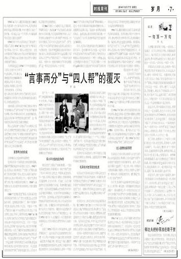 本文摘自:《中老年时报》2014年10月17日第07版,作者:罗韬,原题为:《“言事两分”与“四人帮”的覆灭》
