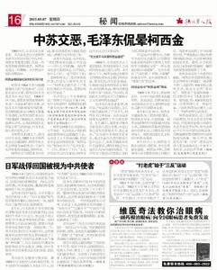 本文摘自:《快乐老人报》2015年5月7日第16版,作者:佚名,原题:《中苏交恶,毛泽东侃晕柯西金》