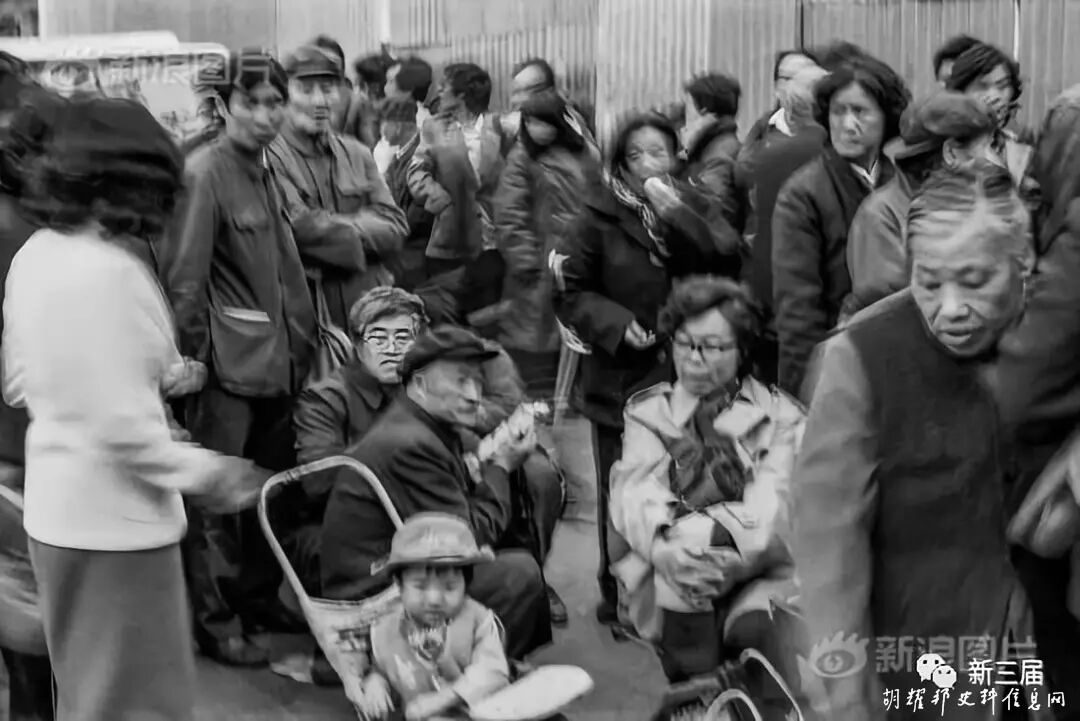 1988年4月30日,北京西单菜市场外拥挤的排队人群。近日,社会商品价格的涨价风已对市民生活产生严重影响