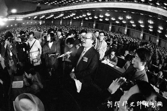 当天,贺延光进入人民大会堂的时候,发现跟往年有所不同,大会堂走廊里隔十几、二十米就有一个麦克风,他当时没反应过来。上午会议接近尾声,许多国内摄影记者已经离开,但贺延光仍在现场。那之前记者对人代会通过人选的认识是“举手一致通过”,突然代表席里站出一个人高喊“我反对”,贺延光这才想到大会堂走廊里的麦克风是为代表们发言预备的。他意识到这是一个具有历史意义的时刻,赶紧脱下毛衣拿起照相机就跑过去,拍下了这中国民主进程中的一幕。