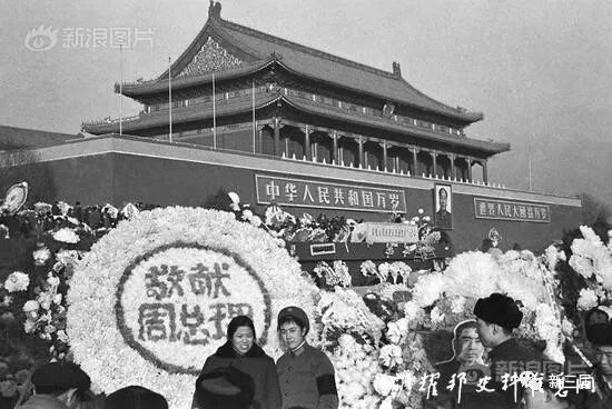 1977年1月8日,天安门两侧摆满了纪念周恩来的花圈。1976年清明节,天安门爆发了悼念周恩来、反对“四人帮”的震惊中外的“四五运动”。随后,三百余人被捕入狱