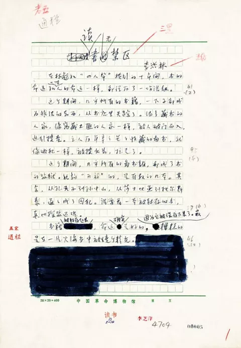 《读书无禁区》的手稿 (资料图片由受访者提供)。作者原题是《打破读书的禁区》,改成《读书无禁区》发表后,赞成的人很多