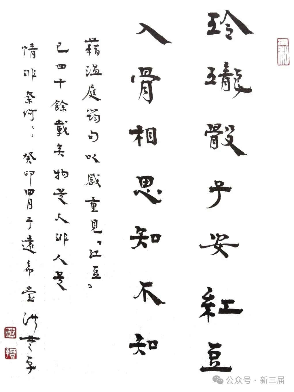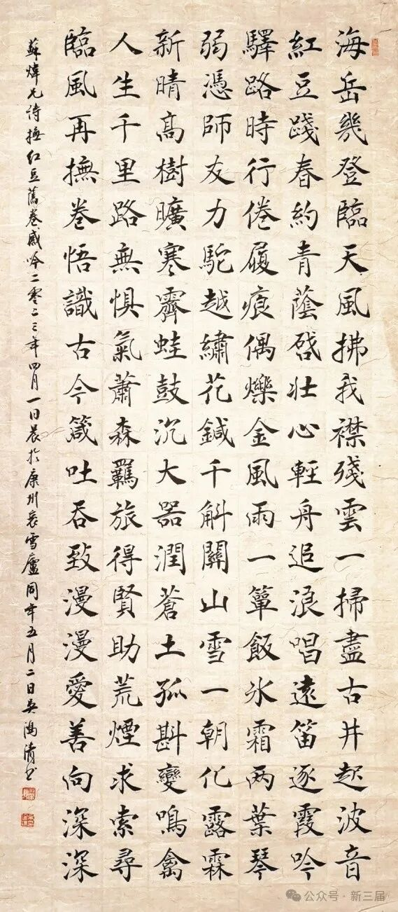 77级苏炜诗作《抚〈红豆〉旧卷感吟》,78级吴鸿清书