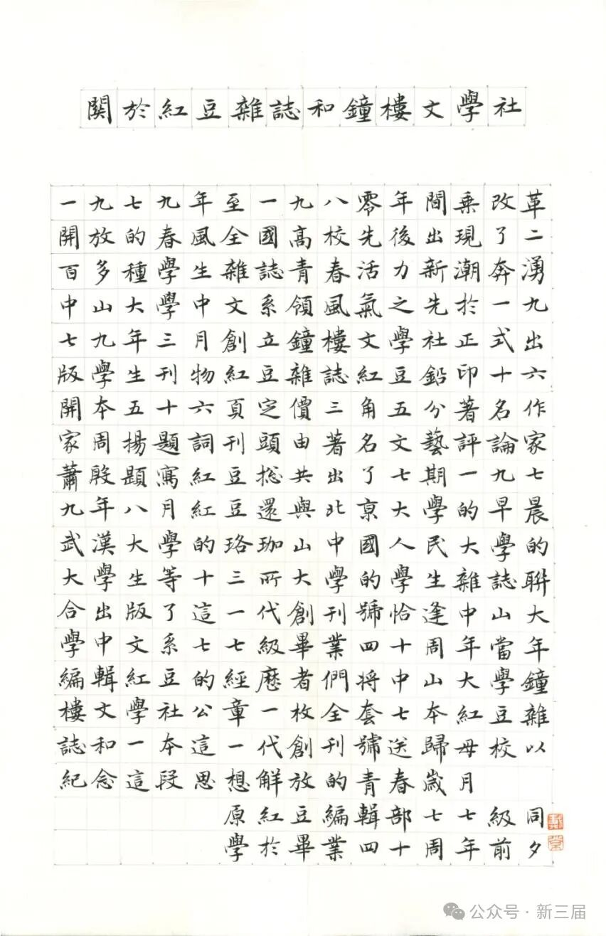 77级王培楠撰文、戴小京书《关于红豆杂志和钟楼文学社》