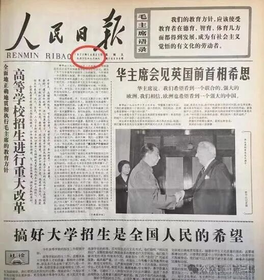 《人民日报》1977年10月21日《高等学校招生进行重大改革》报道