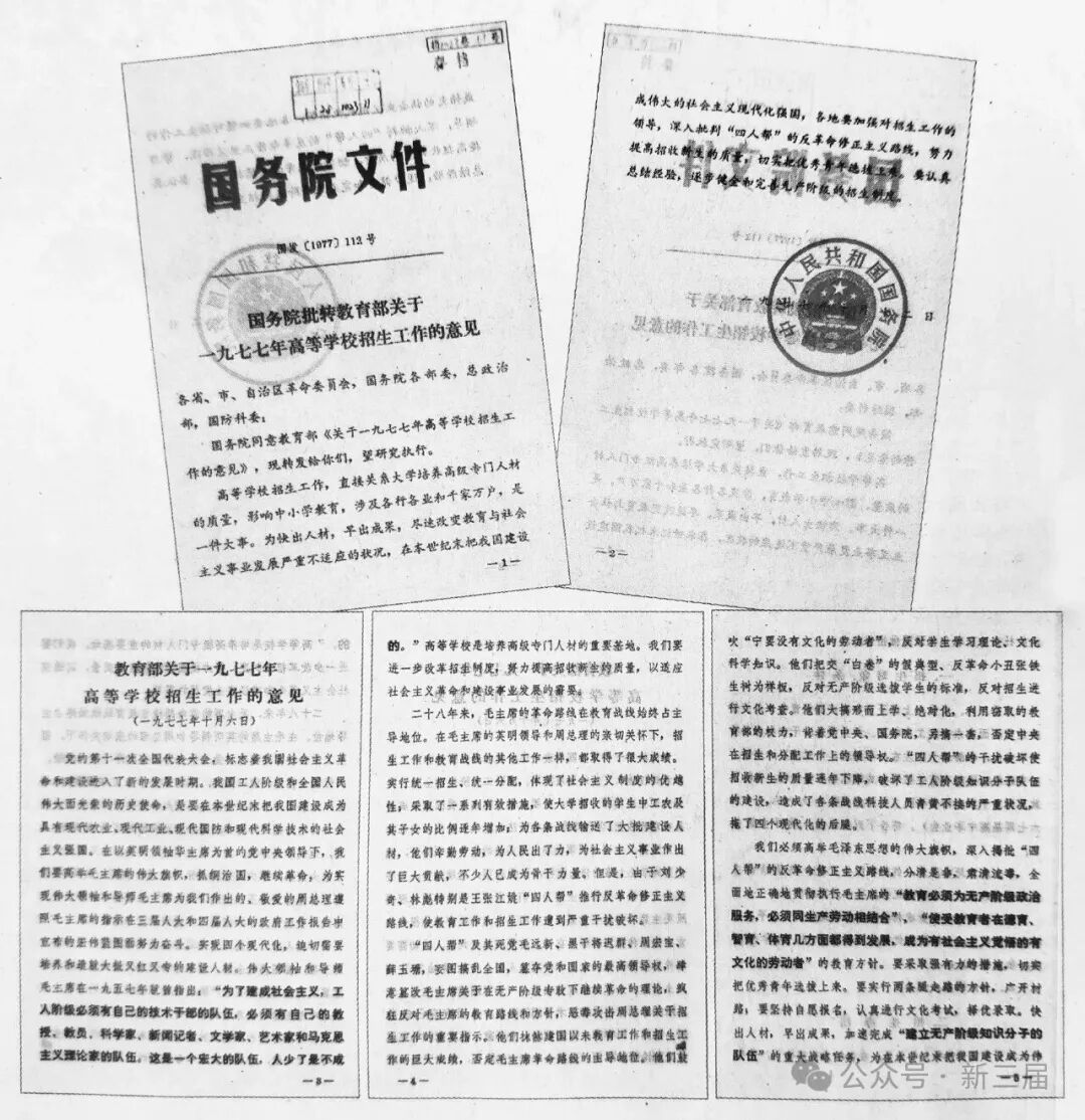 1977年10月12日《国务院批转1977年招生工作意见》(局部)
