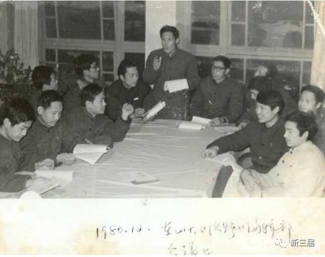 暑假之后,“反资产阶级自由化”的风声开始“紧”了,我们有一种不祥的预感,在编辑速度上有点“抢时间”的意思,尽管是“抢时间”,1980年第2期(总第4期)还是拖到了1980年底了,这一期增添了页码,由原定的100页增加到130页,而且颇有预见地在刊后用了整整三页的篇幅、用小字号排出了“《沃野》一至四期总目录”,似乎有点儿“悲壮告别”的意味。这张照片是最后一次编委会合影,时间是1980年12月份(下图)。