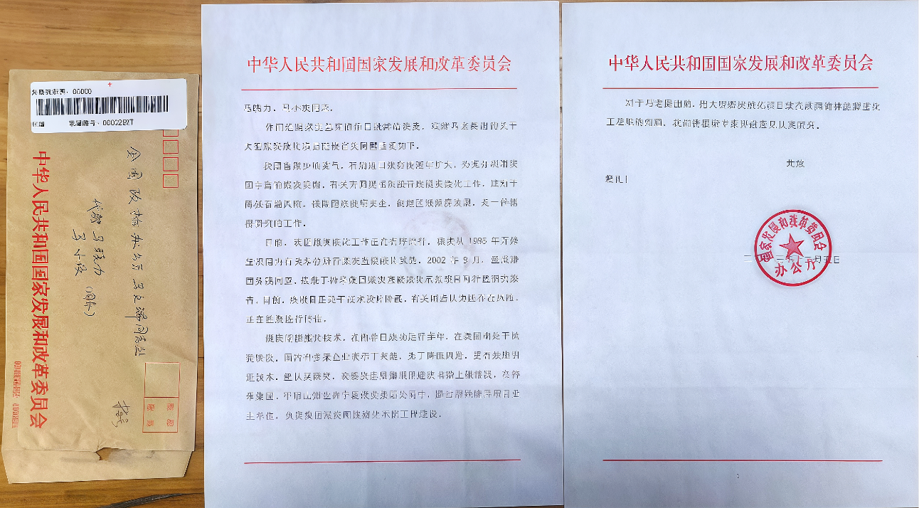 我们记得父亲在临终前的一个心愿是将大型煤炭液化项目放在陕西榆林,并让我们姊妹写信给温总理,此信温总理很快批转国家发展改革委员会,发改委给我们姊妹予以及时回复。