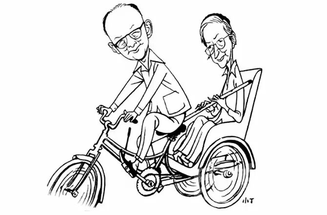 漫画家丁聪笔下的周有光、张允和夫妇